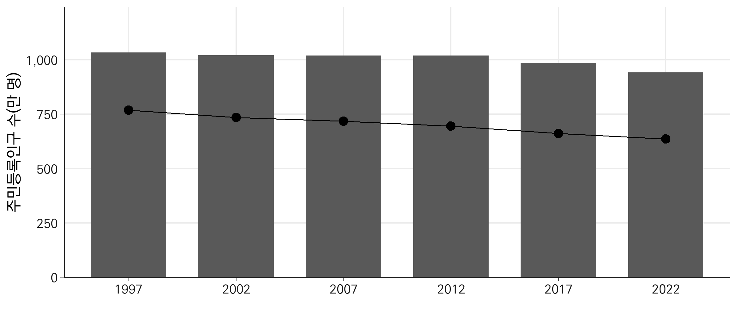 주민등록인구수 = as.numeric(주민등록인구수) / 10000) %>%